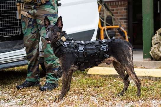 Dutch Shepherd on duty: Image Credit: NSC Photography, Shutterstock – https://pangovet.com/pet-breeds/dogs/military-dog-breeds/